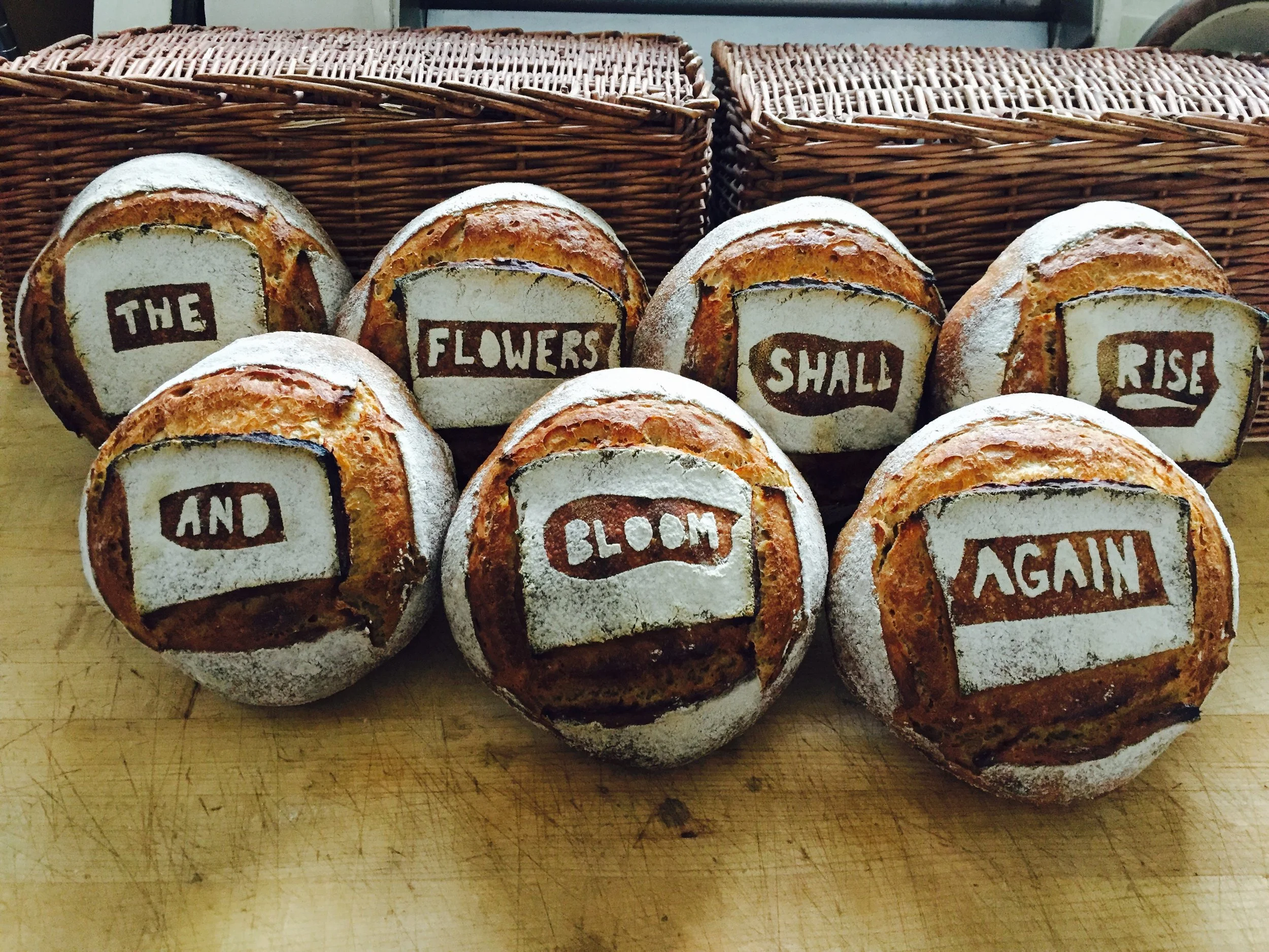 Because Farmer Ground Flours are generally not as strong as commercial flours, and because they all contain a significant proportion of bran, doughs made from Farmer Ground Flours are slightly more susceptible to tearing. We make sure that we support the skin of our loaves by proofing them in baskets or bannetons with their bottom or seam-side facing up.