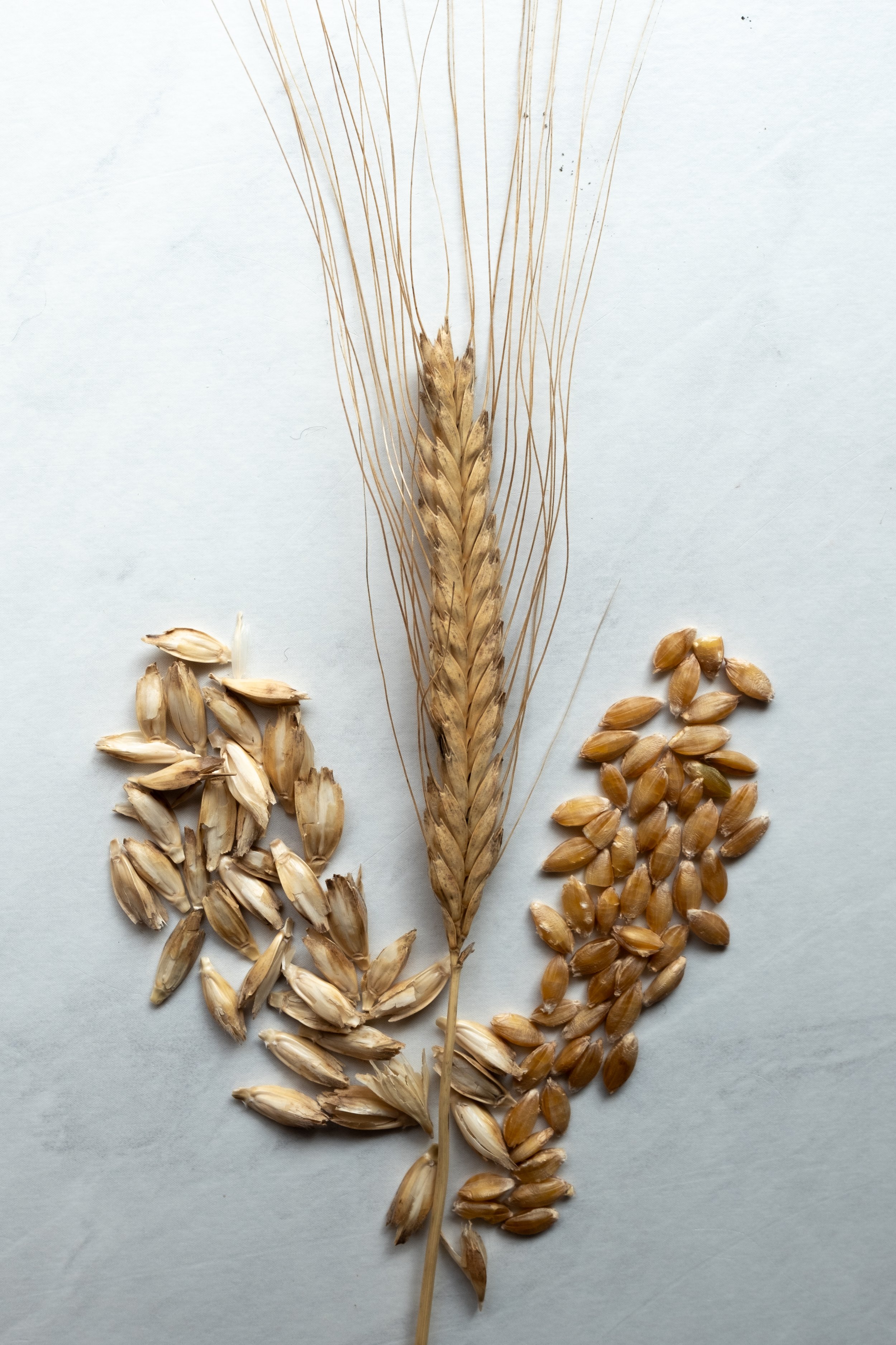 We don’t call our flour “white” (although be aware that several retailers do label it that way on the shelf!) because it is produced very differently than commercial white flour. Modern commercial mills use roller milling to remove 100% of the bran and germ (the healthiest parts) from the endosperm (the starch) before milling the endosperm into that paper white flour. Sometimes this flour is even bleached for whiteness. These flours will last on the shelf indefinitely because they have little nutritional value. After the removal of the bran and germ, this process yields about 70lb of flour from 100lb of grain, so it is also called 70% extraction.