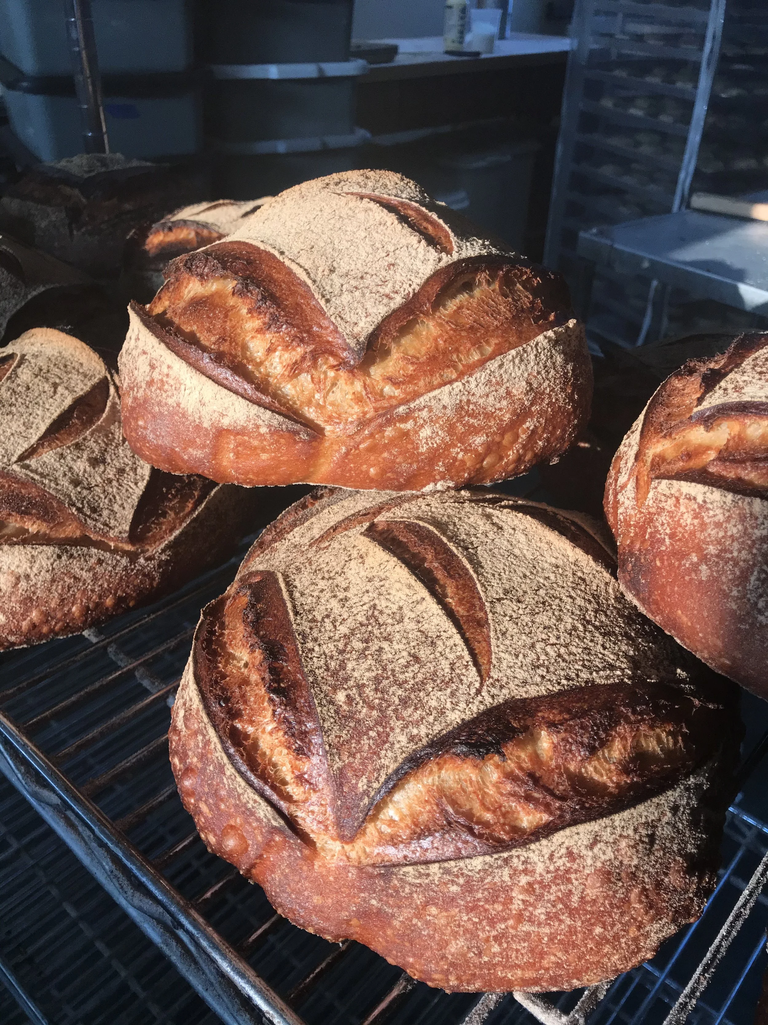 Our process of just sifting out the large pieces of bran yields about 85lb of flour from 100lb of grain, aka 85% extraction or High Extraction compared to white flour.