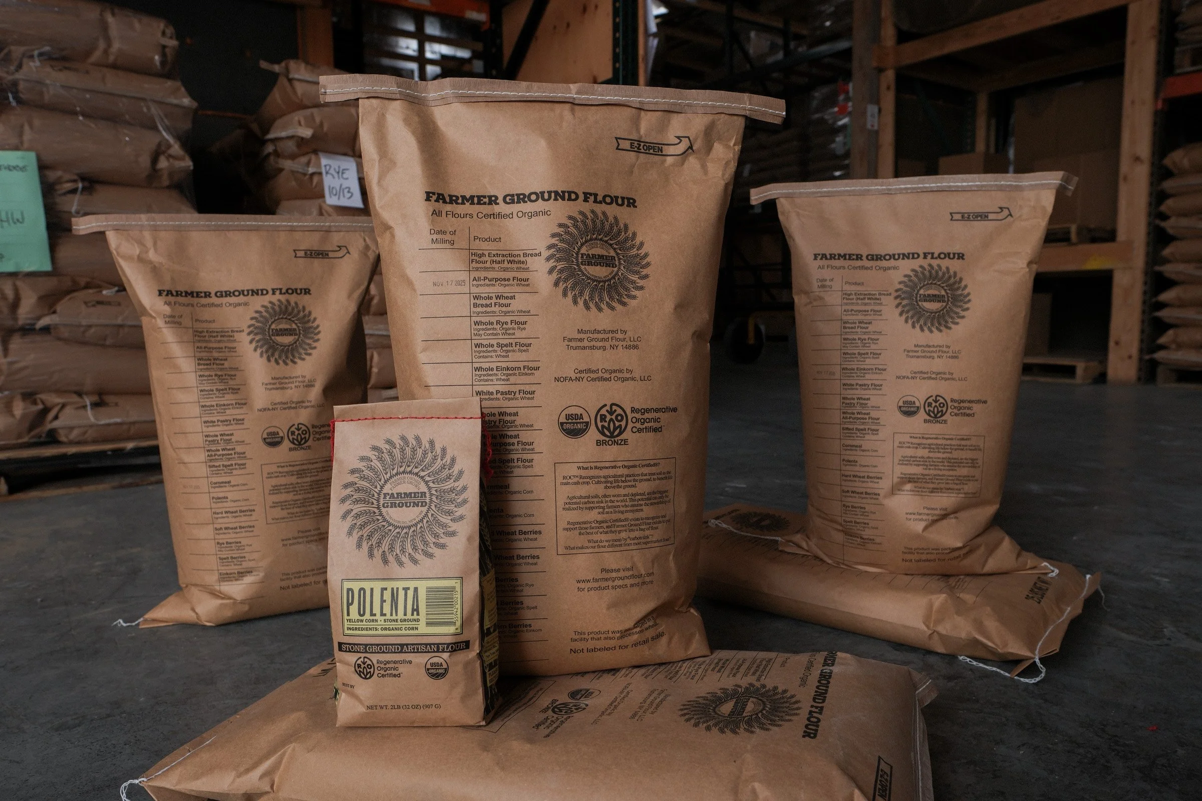 Our flour is raw and pure. We use certified organic grains and our process begins and ends with stone milling. It takes under a minute for grain to go through our granite mills and sifters, ready to be bagged. Our flour is unbleached, non bromated, and has nothing added. The flour stays naturally rich in nutrients due to the bran (the shell of the grain) and germ remaining in the milling process. It all gets milled into the bag, giving our flour its creamy warm color.